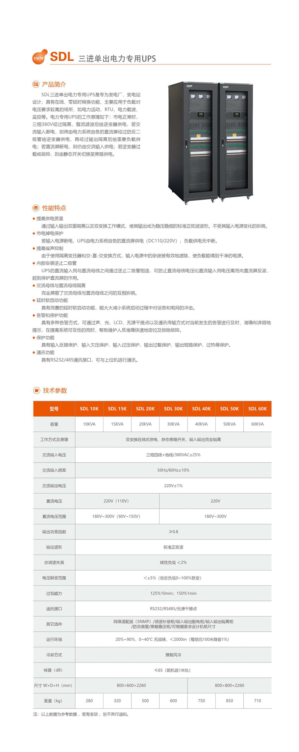 EKSI愛(ài)克賽全系列電源產(chǎn)品——愛(ài)克賽SDL系列三進(jìn)單出電力專用UPS電源